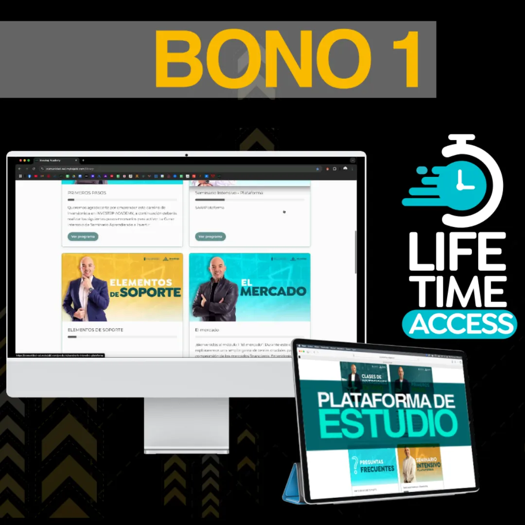 - 1 año completo de mentorías en vivo de inversión con Yoel Sardiñas (clases 3 veces a la semana).
